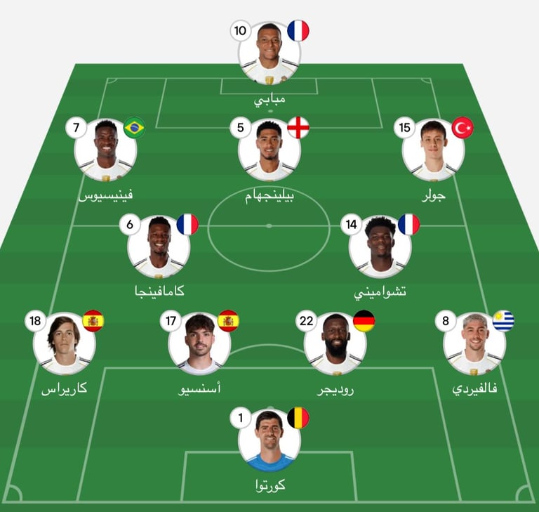 حسم المدير الفني لريال مدريد، تشابي ألونسو، ملامح التشكيلة المتوقعة التي سيخوض بها المباراة النهائية المرتقبة، وذلك بعد تأكد جاهزية النجم الفرنسي كيليان مبابي وعودته لقيادة خط الهجوم. ومن المنتظر أن يعتمد ألونسو على خطة 4-2-3-1، التي تمنح الفريق توازنًا دفاعيًا وقوة هجومية، مع استغلال السرعة الكبيرة في الأطراف. في حراسة المرمى، يحافظ البلجيكي تيبو كورتوا على مكانه الأساسي، بينما يتكوّن الخط الخلفي من داني كارفاخال وأنطونيو روديغر وأسينسيو، إلى جانب فيديريكو فالفيردي الذي قد يشغل مركز الظهير الأيمن لدوره الدفاعي والهجومي المتوازن. وفي وسط الميدان، يعتمد ريال مدريد على ثنائي الارتكاز إدواردو كامافينغا وأوريلين تشواميني لتأمين العمق وبناء اللعب، أمامهم جود بيلينغهام في دور صانع الألعاب. أما على الأطراف، فيقود البرازيلي فينيسيوس جونيور الجبهة اليسرى، في حين يتواجد التركي أردا غولر في الجهة اليمنى، خلف المهاجم الصريح كيليان مبابي الذي يعود لقيادة الهجوم في النهائي المنتظر. وتعكس هذه التشكيلة رغبة تشابي ألونسو في فرض أسلوب هجومي ضاغط، مع الاعتماد على السرعة والتحولات السريعة، خاصة بوجود مبابي وفينيسيوس، في مباراة يتطلع خلالها ريال مدريد للتتويج بلقب جديد